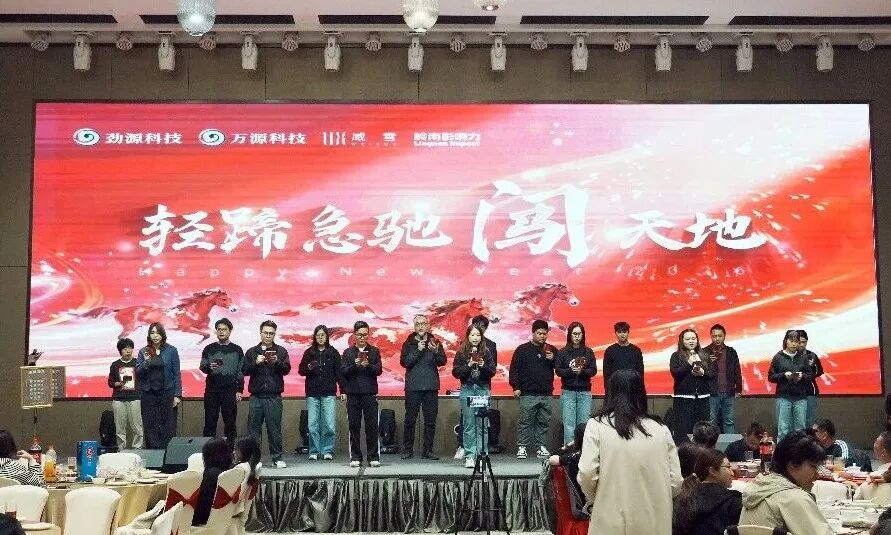 岁月鎏金,征程再启。广州市万源能源科技有限公司新春年会于2026年 1 月 30 日在千灯盛汇酒店六楼宴会厅隆重举行,公司领导与全体职工欢聚一堂。以 “轻蹄急驰闯天地” 为主题总结过往、凝聚力量、共绘蓝图。全场洋溢锐意进取、团结奋进的热烈氛围;盛会启幕,欢快激昂的旋律中主持人登场,热情开场白点燃全场,开篇贺年视频传递温情与归属感,大合唱《奔跑》铿锵唱响,既展员工朝气蓬勃风貌,更传全员携手向前、勇攀高峰的坚定信念,为年会奠定昂扬向上基调。